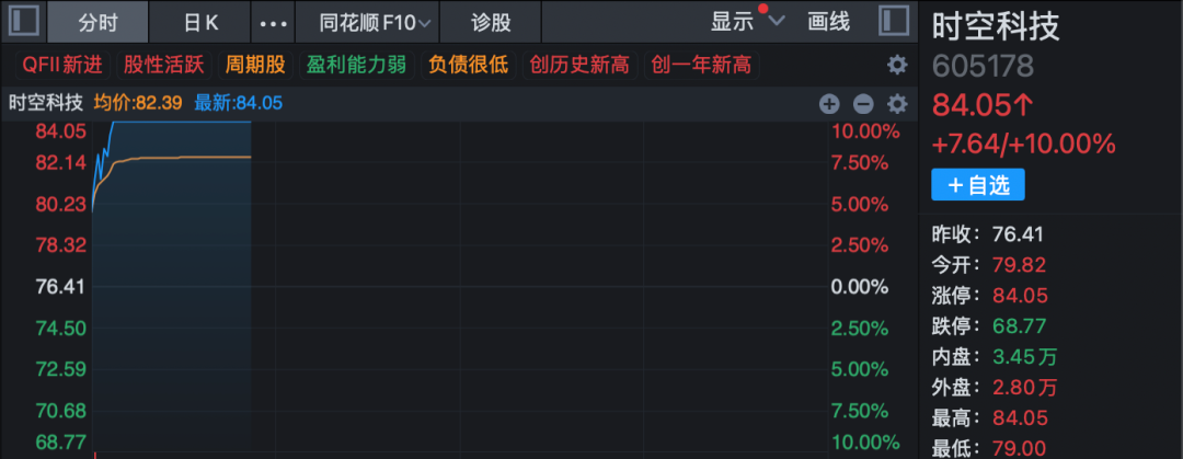 存储芯片概念拉升,时空科技涨停,微导纳米、佰维存储涨幅居前,普冉股份、神工股份等纷纷拉升。