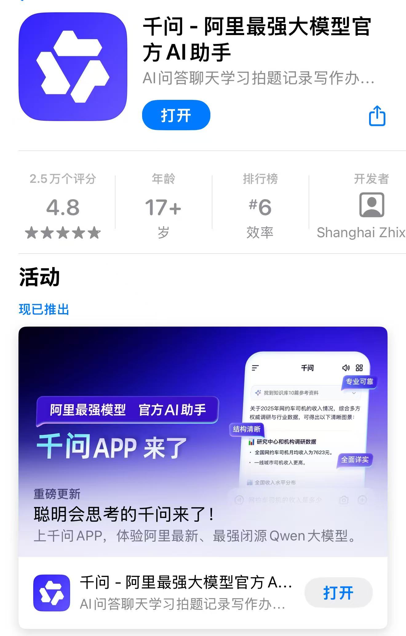 据阿里官方透露,千问APP公测版已登陆各大应用商店,网页端与PC版同步开放。