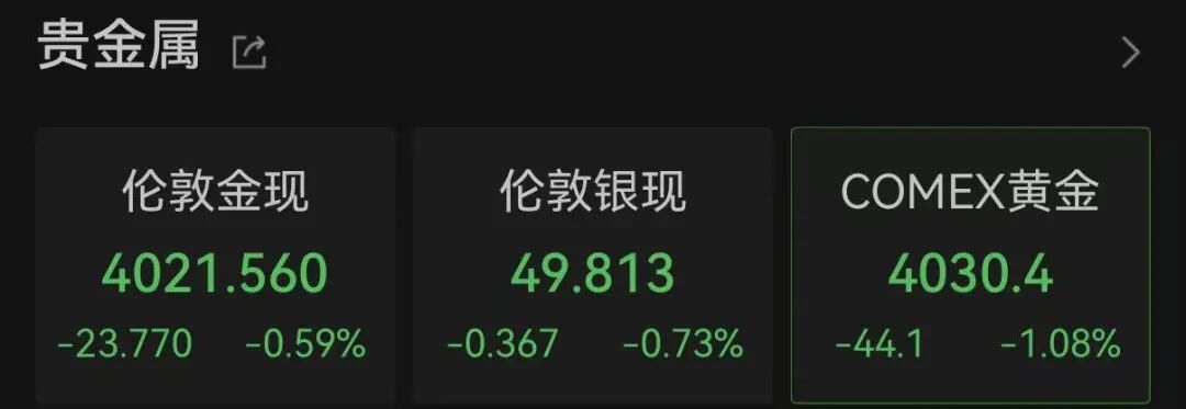 国际金银价格开盘后跳水。伦敦现货黄金盘中失守4030美元/盎司;伦敦现货白银跌破50美元/盎司重要关口。