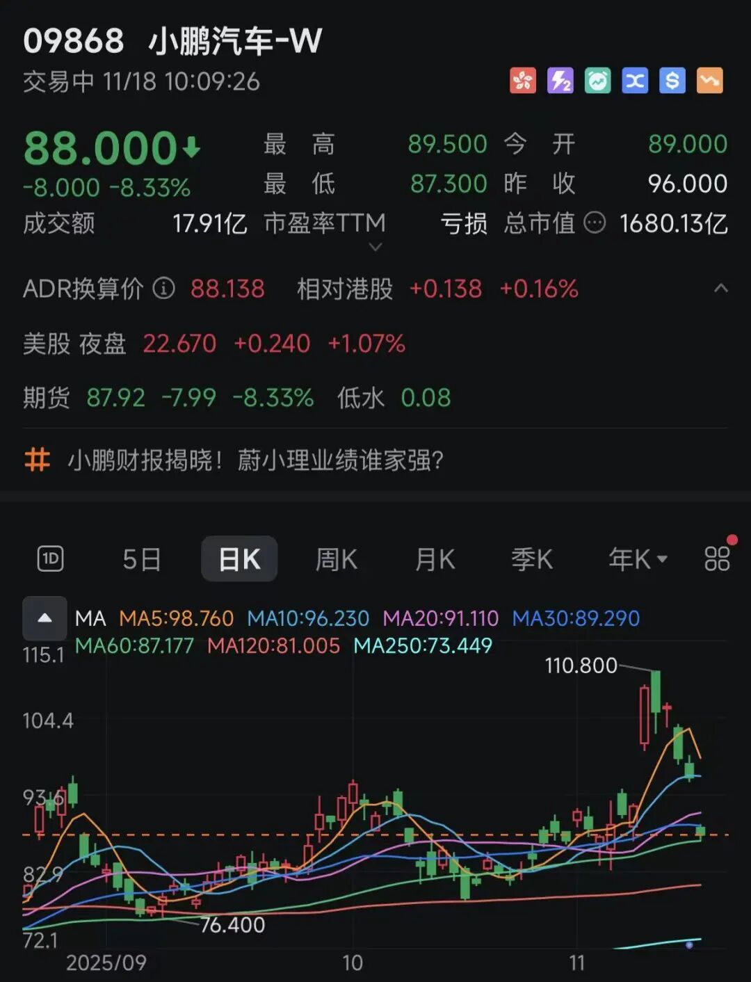 港股方面,恒生指数和恒生科技指数均跌逾1%。小鹏汽车跌超8%,理想汽车、蔚来跌近3%。百济神州涨近4%,信达生物涨近2%。百度集团、腾讯控股跌逾1%。