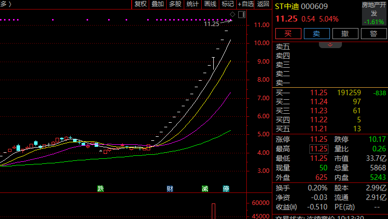 值得注意的是,ST中迪(000609)复牌后再度涨停,已连续20个交易日封板。昨晚,ST中迪公告,经公司申请,公司股票于11月18日(星期二)开市起复牌。ST中迪称,停牌期间,公司就股价波动的相关事项进行了核查。经查,公司未发现近期公共传媒报道可能或已经对公司股票交易价格产生较大影响的未公开重大信息。同时,近期公司经营情况正常,内外部经营环境未发生重大变化。