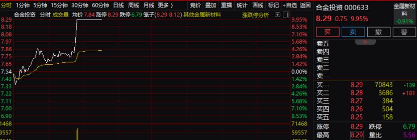 核电核能概念股合金投资低开高走,盘中突然直线拉升,两分钟内快速封死涨停板,最大封单超3.5亿元,超过总市值的10%。