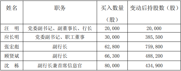 人民财讯11月18日电,沪农商行(601825)11月18日公告,公司部分高级管理人员于11月13日至11月17日期间,以自有资金从二级市场买入公司普通股股票,成交价格区间为每股9.02元至9.08元。上述高级管理人员承诺将上述所购股票自买入之日起锁定两年。
