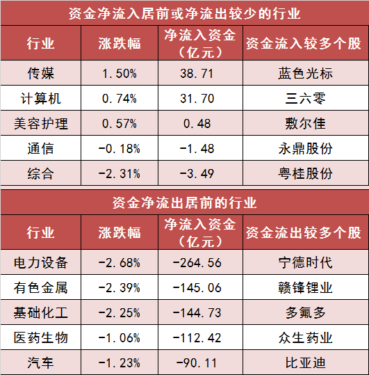 3.传媒等行业实现净流入