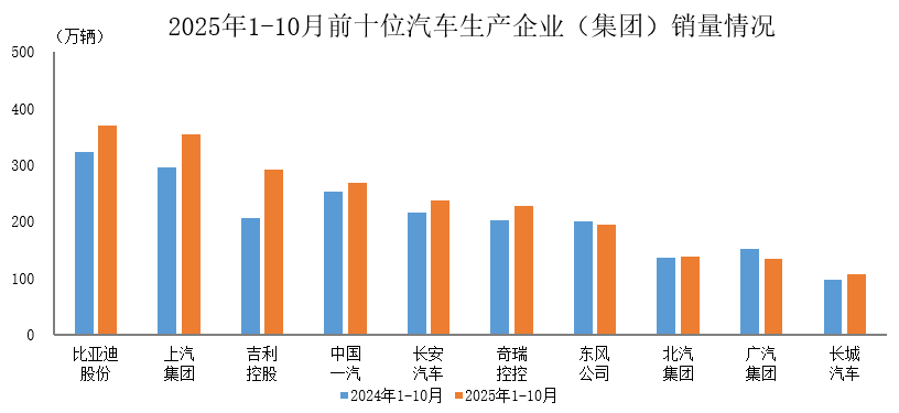 人民财讯11月19日电,据中国汽车工业协会统计分析,2025年1—10月,汽车销量排名前十位的企业(集团)共销售2328.1万辆,占汽车销售总量的84.1%。