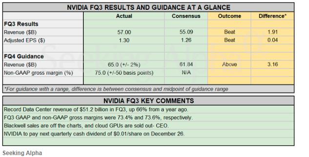 当地时间周三盘后,英伟达发布第三财季财报,营收和每股收益均超出华尔街预期,同时给出的四季度营收指引表现强劲。截止记者发稿时,盘后交易中,英伟达股价上涨超3.7%。