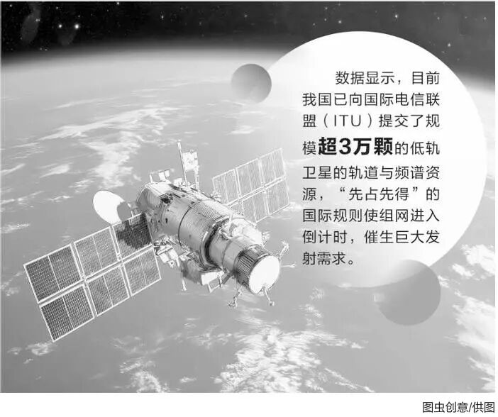 数据显示,目前我国已向国际电信联盟(ITU)提交了规模超3万颗的低轨卫星的轨道与频谱资源,“先占先得”的国际规则使组网进入倒计时,催生巨大发射需求。