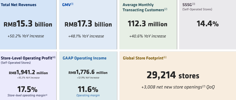 受此推动,在三季度,瑞幸营收同比增长50.2%至152.87亿元。其中,自营门店收入同比增长47.7%至110.803亿元。