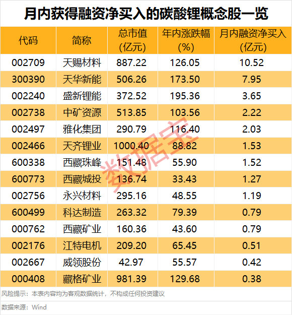 11月以来(截至11月19日),资金对碳酸锂相关概念股进行加持,七成概念股获得融资净买入,其中9股的融资净买入额超1亿元。天赐材料11月以来共吸引10.52亿元融资净买入,产能方面,天赐材料正在着力进行海外扩张。