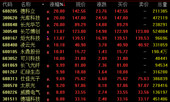 CPO概念盘中强势拉升,截至收盘,德科立、光库科技、长光华芯20%涨停,长芯博创、炬光科技涨近14%,仕佳光子、太辰光涨超9%。