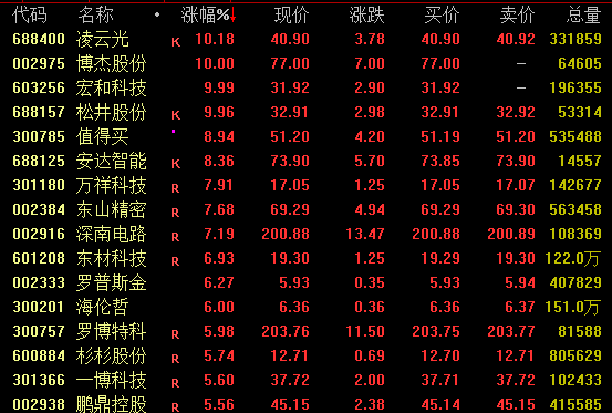 PCB概念亦走强,沪电股份、博杰股份、宏和科技等涨停,景旺电子、生益电子等涨超6%。