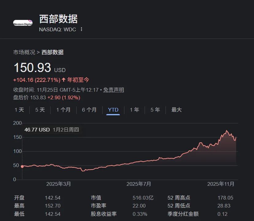 因看好其受益于AI驱动的存储需求,多家机构上调了Sandisk目标价。杰富瑞在10月21日将该股目标价从60美元大幅上调至180美元,维持“买入”评级,指出NAND定价趋势展现出韧性。