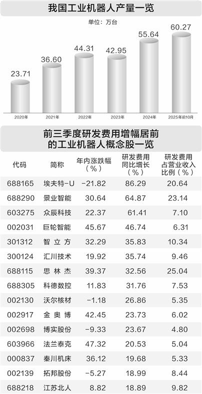 人民财讯11月26日电,近年来,全国工业机器人市场持续火热。根据国家统计局数据,今年1—10月我国工业机器人产量达到60.27万台,同比增长28.8%,已超过2024年全年,产量创出新高。