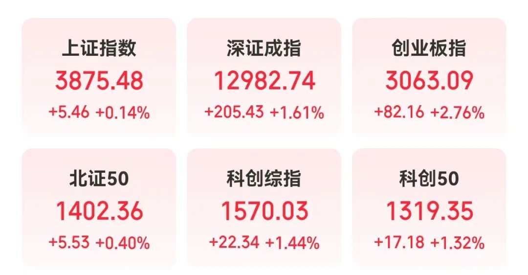 今日(11月26日)上午,A股各主要指数全线上涨,两大科创指数上午收盘均涨超1%,创业板指大涨近2.8%。科技板块涨势突出,通信指数飙升5.61%,电子指数大涨超2%。概念板块方面,光模块指数涨超6%,光芯片、光通信指数均涨超4%。