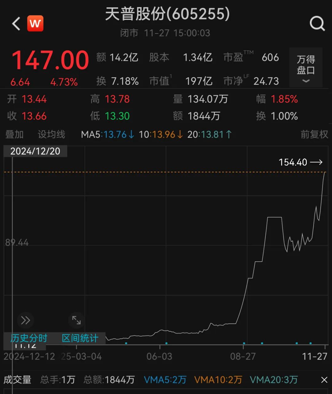 截至今日收盘,天普股份今年以来累计涨幅超1000%。