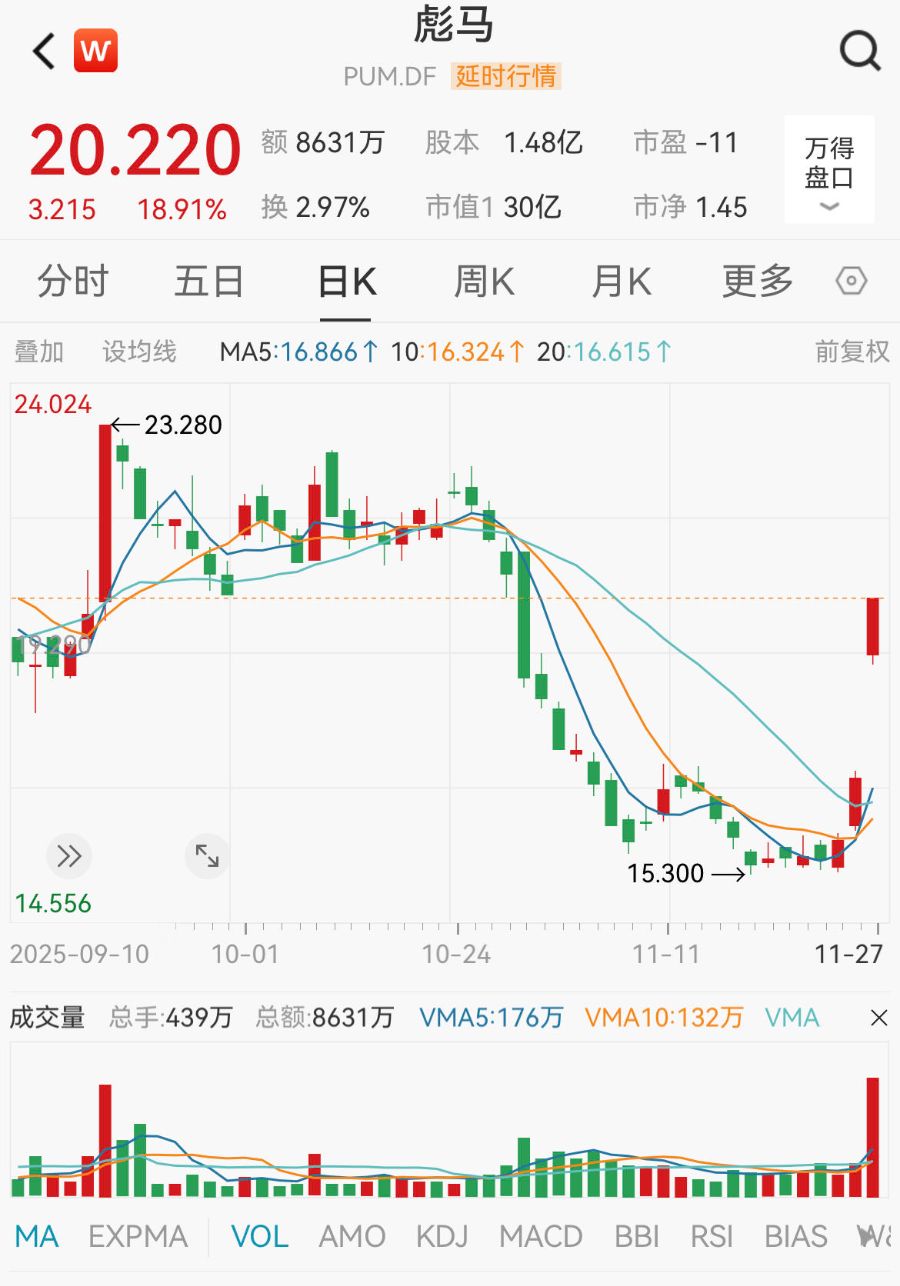 受此消息影响,彪马德国股价在11月27日大幅飙涨18.91%,创下近一年来最大单日涨幅。这一强劲表现与彪马年内股价已跌去54.42%的惨淡走势形成鲜明对比。