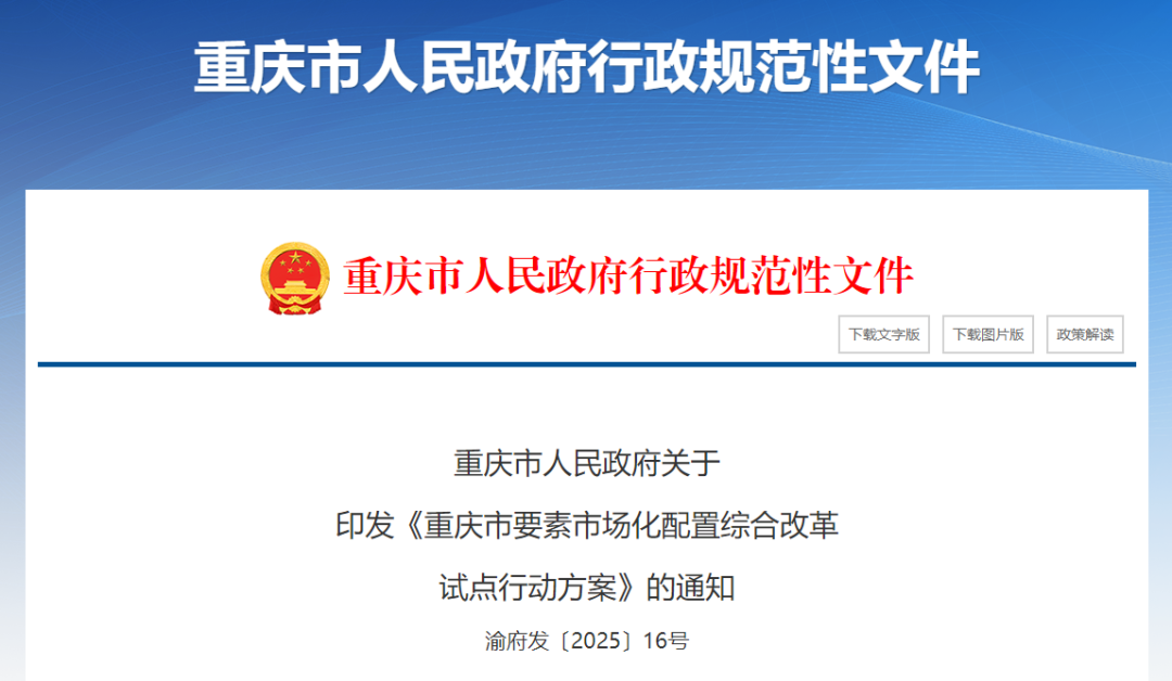 消息面上,重庆市人民政府印发《重庆市要素市场化配置综合改革试点行动方案》,来看一下重点内容。
