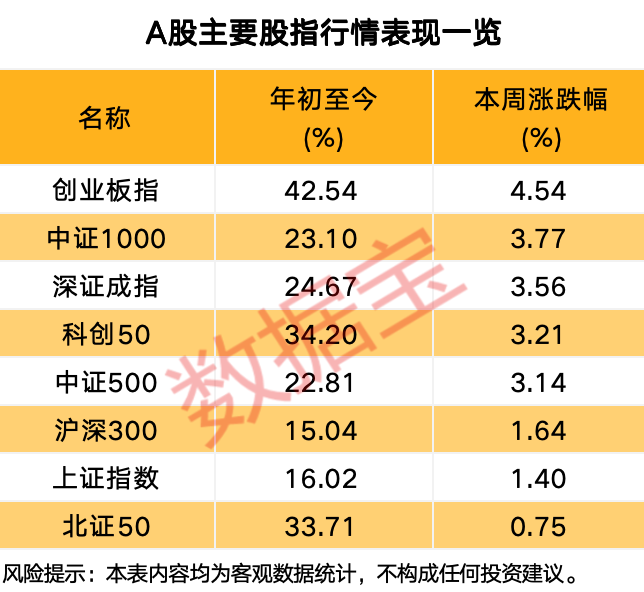 本周(11月24日至28日),A股市场震荡走高,成交规模维持在1.5万亿元上方。指数方面,上证指数本周上涨1.4%,最新报3888.60点;深证成指上涨3.56%;创业板指上涨4.54%,为本周涨幅最高的A股主要指数。
