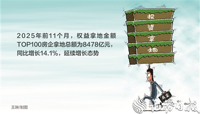 中指研究院发布的最新数据显示,2025年前11个月,权益拿地金额TOP100房企拿地总额为8478亿元,同比增长14.1%,延续增长态势。