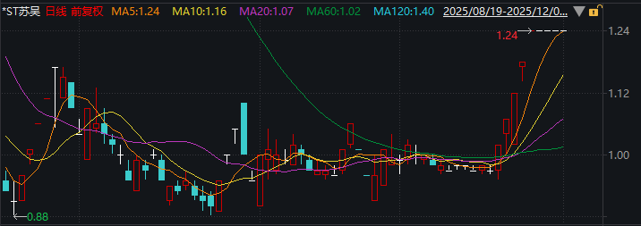 值得注意的是,在此次停牌前,*ST苏吴股票已连续 5个交易日涨停。11月21日晚,公司曾发布股价异动公告称,因涉嫌信息披露违法违规,公司被证监会立案调查。2025年7月13日,公司收到中国证监会下发的《行政处罚事先告知书》。认定公司虚增营业收入、营业成本和利润,2020年至2023年年度报告存在虚假记载,触及重大违法强制退市情形。公司股票已于2025年7月14日起被叠加实施重大违法类强制退市风险警示。