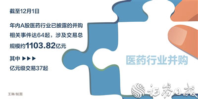 2025年以来,医药行业并购热度持续攀升。《证券日报》记者根据Choice数据统计,截至12月1日,年内A股医药行业已披露的并购相关事件达64起,涉及交易总规模约1103.82亿元。其中,亿元级交易37起。