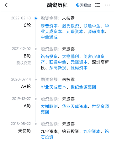 天眼查资料显示,在刚成立的第二年,乐动机器人就完成了天使轮融资,随后的2019年、2020年、2021年和2022年,公司每年都有新的融资。天眼查数据显示,公司最近一轮融资是2022年2月份发生的C轮融资。