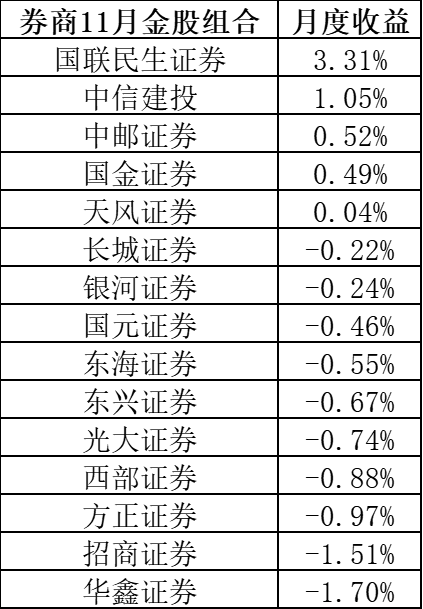 11月券商金股收益排名出炉