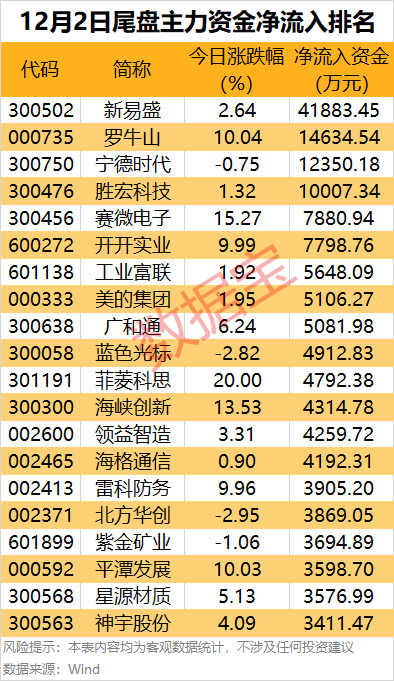 光模块龙头股新易盛主力资金净流入11.58亿元,居首;PCB龙头股胜宏科技主力资金净流入9.87亿元,居次席。
