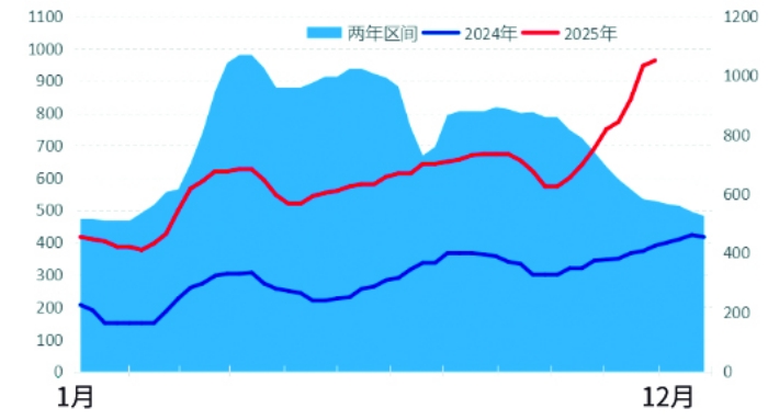 “预计价格上涨幅度十分有限。”孙珊珊认为,12月行业开工负荷保持相对高位,供应过于宽松的状态并未改变。展望2026年1至2月,预计市场活跃度偏低,价格波动空间有限,上涨依然遭遇需求阻力。