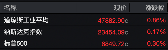 美股方面,12月3日收盘,三大指数全线上涨。