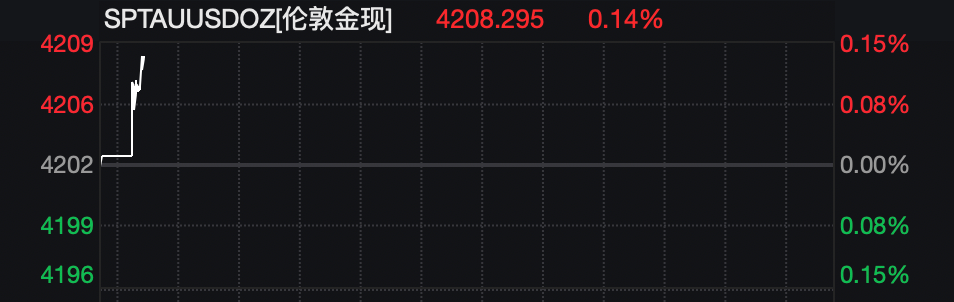 12月4日早盘,现货黄金高开并快速拉升。截至发稿,伦敦金现报4208.295美元/盎司,涨幅为0.14%。