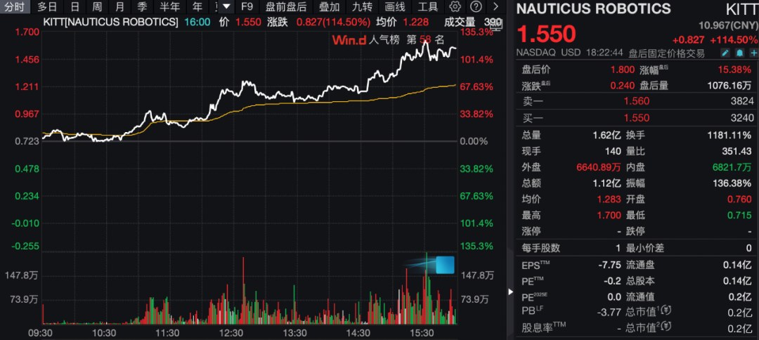 机器人概念股走高,Nauticus Robotics涨超114%,iRobot涨超73%,Serve Robotics涨超18%。报道称特朗普政府在大力发展AI后,转向聚焦机器人。