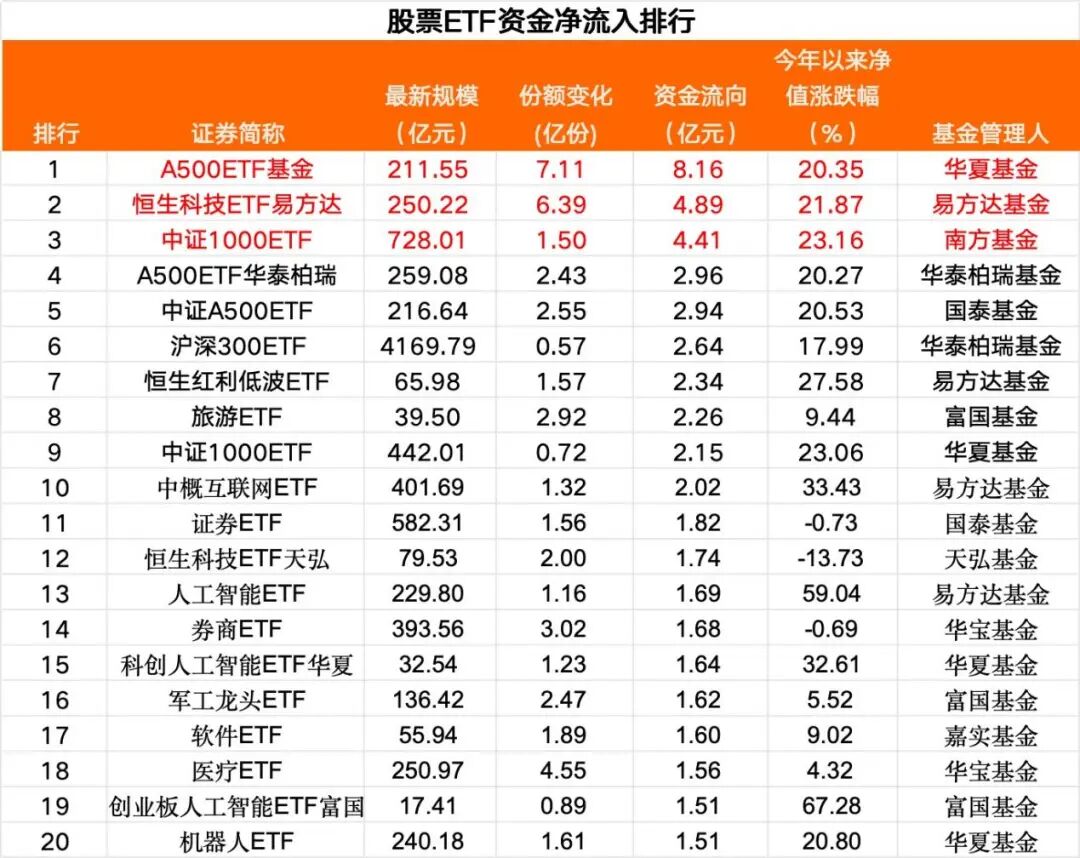 数据显示,头部基金公司旗下部分ETF持续“吸金”。