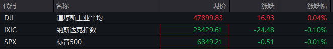 当地时间12月4日晚间,美股三大指数集体高开,随后震荡走低,三大股指一度纷纷转跌,小幅探底后震荡回升。截至发稿,道指涨0.04%,标普500指数跌0.01%,纳指跌0.1%。