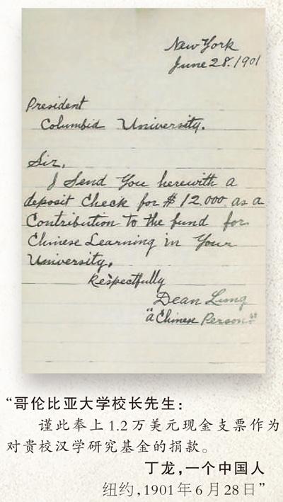 1901年,一位名不见经传的普通华工,以“丁龙,一个中国人”的落款向位于美国纽约的哥伦比亚大学(以下简称“哥大”)捐赠1.2万美元。丁龙的捐款推动创设了美国最早的汉学教席之一,意在聘请精通汉学的杰出学者到哥大开展研究教学,传播中国文化。丁龙汉学教席的设立,也成为哥大东亚语言与文化系(以下简称“东亚系”)的发端。