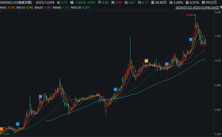 行情数据显示,今年以来,海泰发展股价整体表现强势,累计涨幅超过70%。业绩方面,今年前三季度,公司实现营业收入4.45亿元,同比大增1256.49%,实现归母净利润242.2万元,同比扭亏为盈。