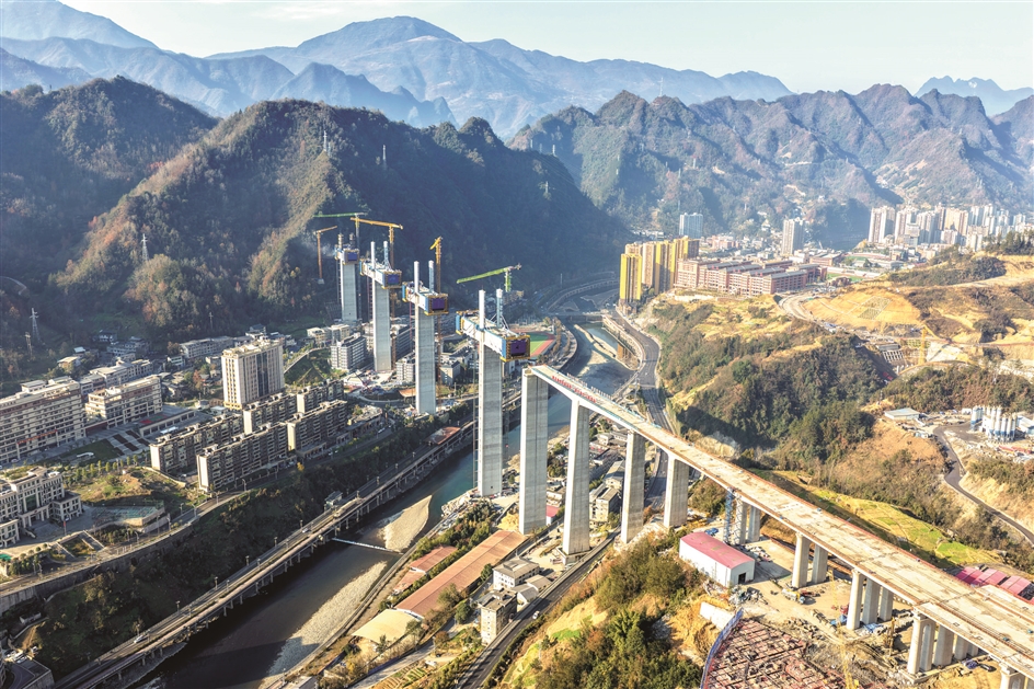 12月7日,由中铁十二局承建的西渝高铁城口任河特大桥塔柱施工任务全部完成,全桥施工进度完成近七成,为西渝高铁全线按期贯通奠定了基础。西渝高铁是我国“八纵八横”高铁网北京至昆明的京昆通道和包头、银川至海口的包(银)海通道的重要组成部分,线路全长739公里,设计时速350公里。新华社记者 唐奕/摄