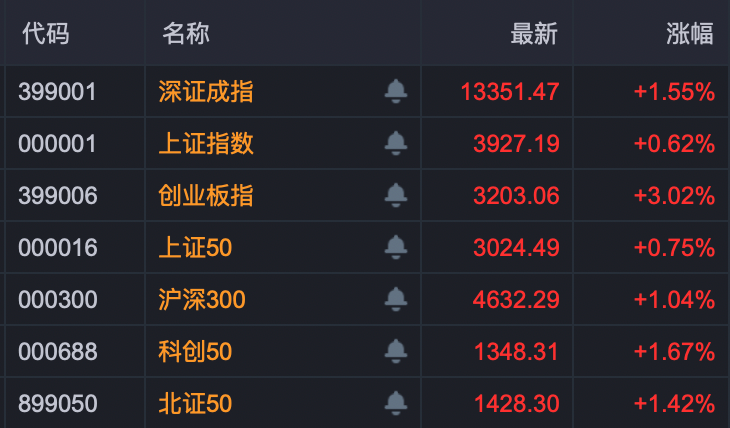 今日(12月8日)早盘,A股全线高开高走,科技成长股领涨,创业板指大涨逾3%,突破3200点,科创50、北证50也涨超1%,上证指数、深证成指等也稳步上扬。上涨个股远多于下跌个股,成交呈快速放大趋势。