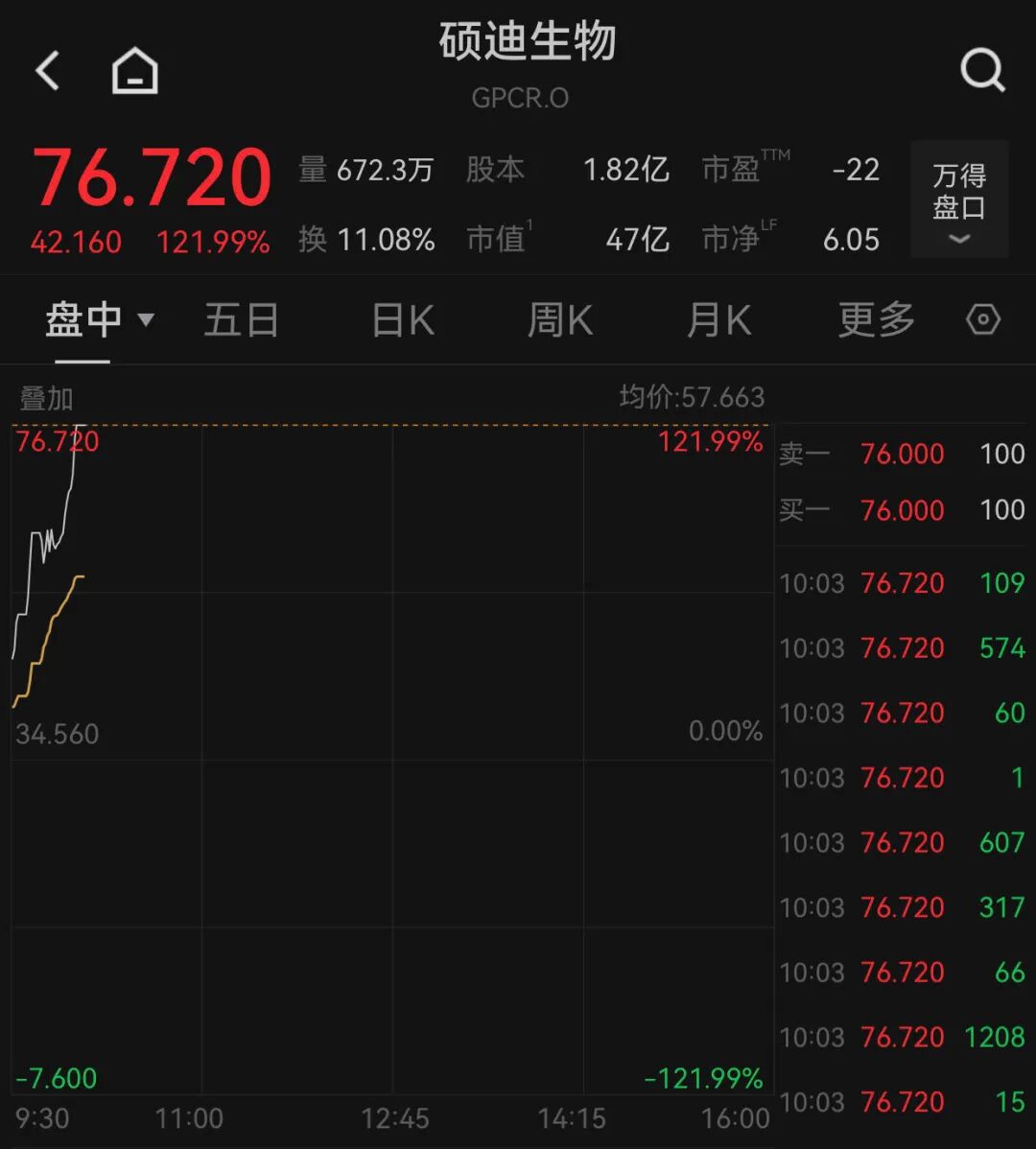 硕迪生物(Structure Therapeutics)大涨121.99%,盘中多次熔断。消息面上,该公司周一宣布,其研发的肥胖症治疗候选药物在一项中期临床试验中,实现了11.3%的体重降幅。
