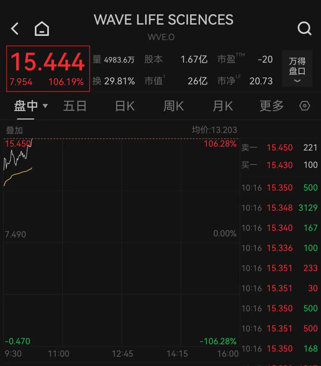 热门个股方面,截至发稿,Wave Life Sciences大涨106.19%。消息面上,该公司表示,其用于治疗肥胖症的WVE-007一期试验的中期数据显示,身体成分有所改善,在最低治疗剂量下,体重减轻效果与GLP-1类似,但没有肌肉损失。