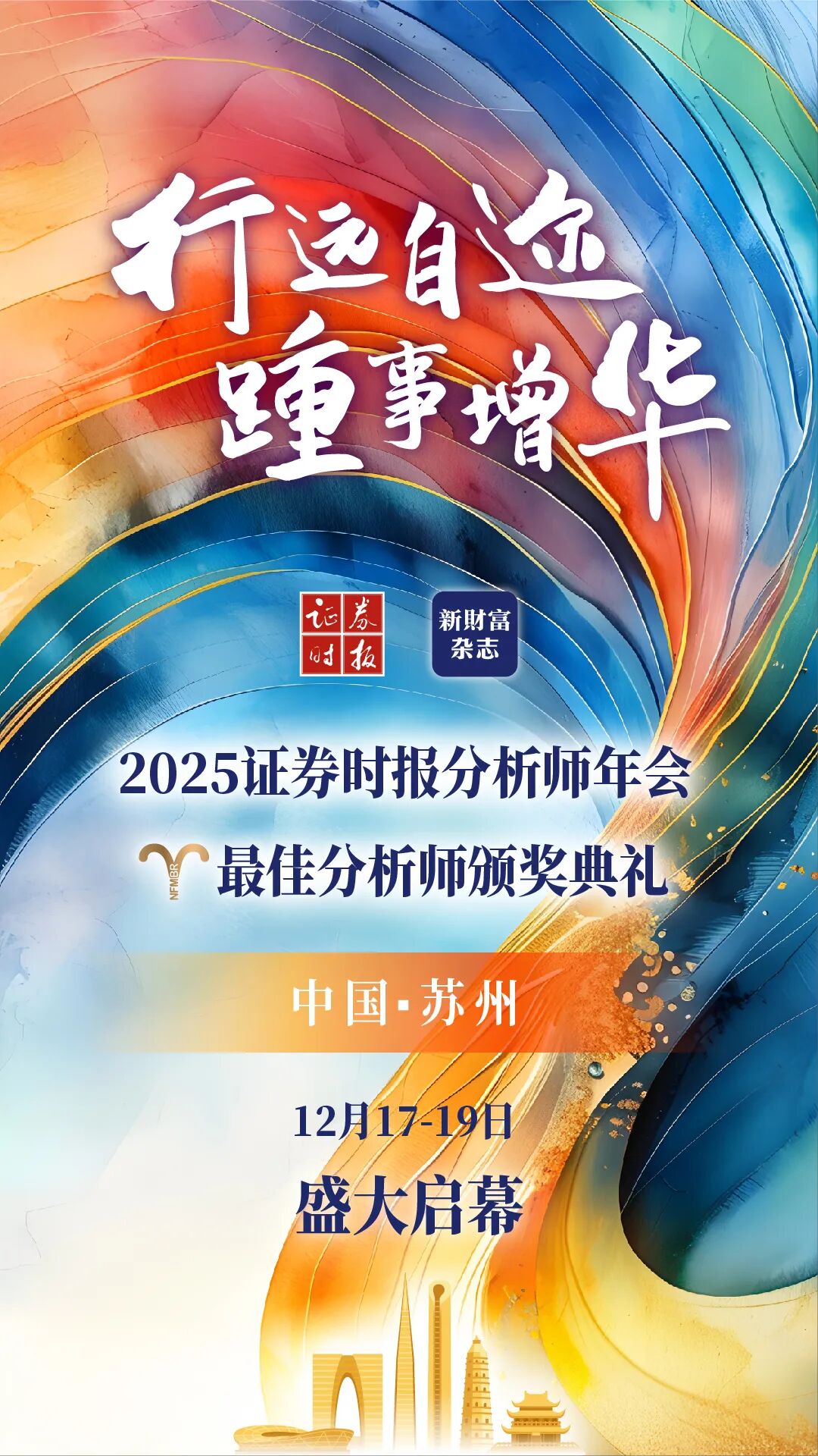 由证券时报社主办、新财富杂志社承办的2025证券时报分析师年会将于苏州盛大启幕。2025证券时报最佳分析师活动覆盖全部主流券商和投资机构,超100万亿资金投票选择,谁将登顶“2025最佳”,谜底即将重磅揭晓!