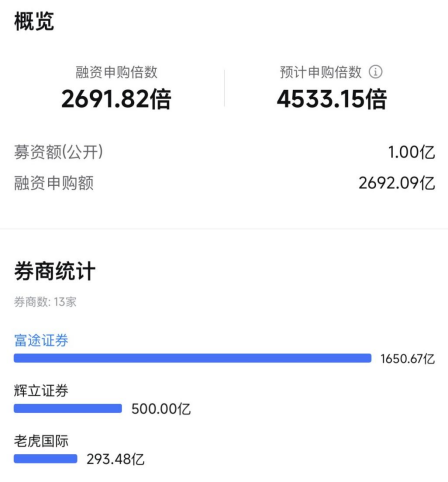 富途牛牛显示,宝济药业的融资申购倍数已超过2691倍: