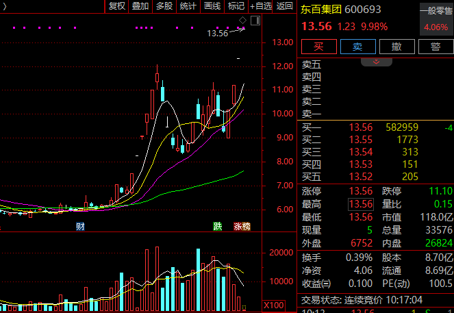 盘初,零售板块持续活跃,东百集团4连板,永辉超市、汇嘉时代涨停,南京商旅、步步高、茂业商业、新华百货涨幅靠前。