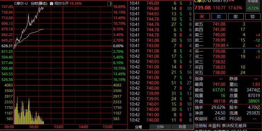 个股方面,摩尔线程盘中涨逾17%,股价突破700元/股关口。摩尔线程发布消息称,12月19日至20日,摩尔线程首届MUSA开发者大会将拉开帷幕。摩尔线程创始人、董事长兼CEO张建中将首次系统阐述以MUSA为核心的全栈发展战略与未来愿景,并发布新一代GPU架构等。