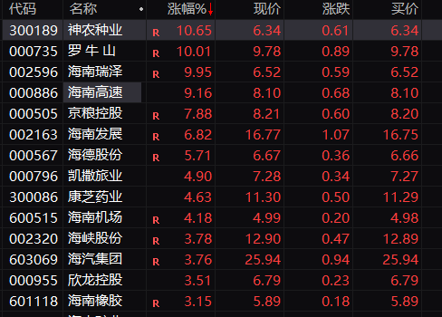 概念板块方面,海南自贸概念领涨,罗牛山、海南高速、海南瑞泽等股票盘中触及涨停,另有多股跟涨。消息面上,中共海南省委关于制定国民经济和社会发展第十五个五年规划的建议发布。建议提到,擦亮“投资自贸港”品牌,健全外商投资服务工作机制和公共平台。推动一批标志性、引领性外资项目落地。促进外贸提质增效,推动市场多元化和内外贸一体化,巩固提升传统贸易优势,创新发展数字贸易,加快培育中间品贸易、跨境电商等,积极推进离岸贸易发展。完善境外人员居住、医疗、教育、支付等生活便利制度,力争实现外国游客和外籍人才数量大幅增长。
