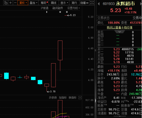 12月10日早盘,永辉超市(601933)开盘一字涨停,午间收盘封板仍超400万手,资金超21亿元。对于股价异动,永辉超市表示,目前生产经营活动正常,稳步有序进行门店调改,内外部经营环境未发生重大变化,不存在应披露而未披露的重大事项。