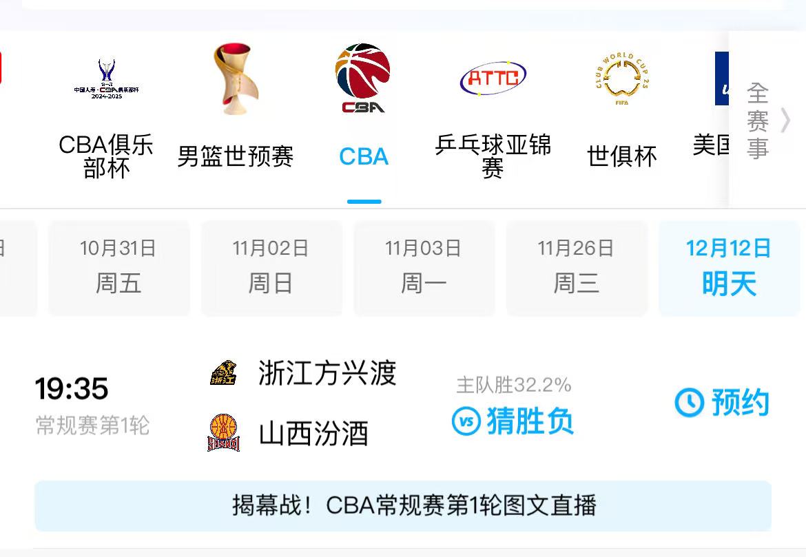 咪咕平台CBA常规赛揭幕战仅采取图文直播/图片来源:咪咕