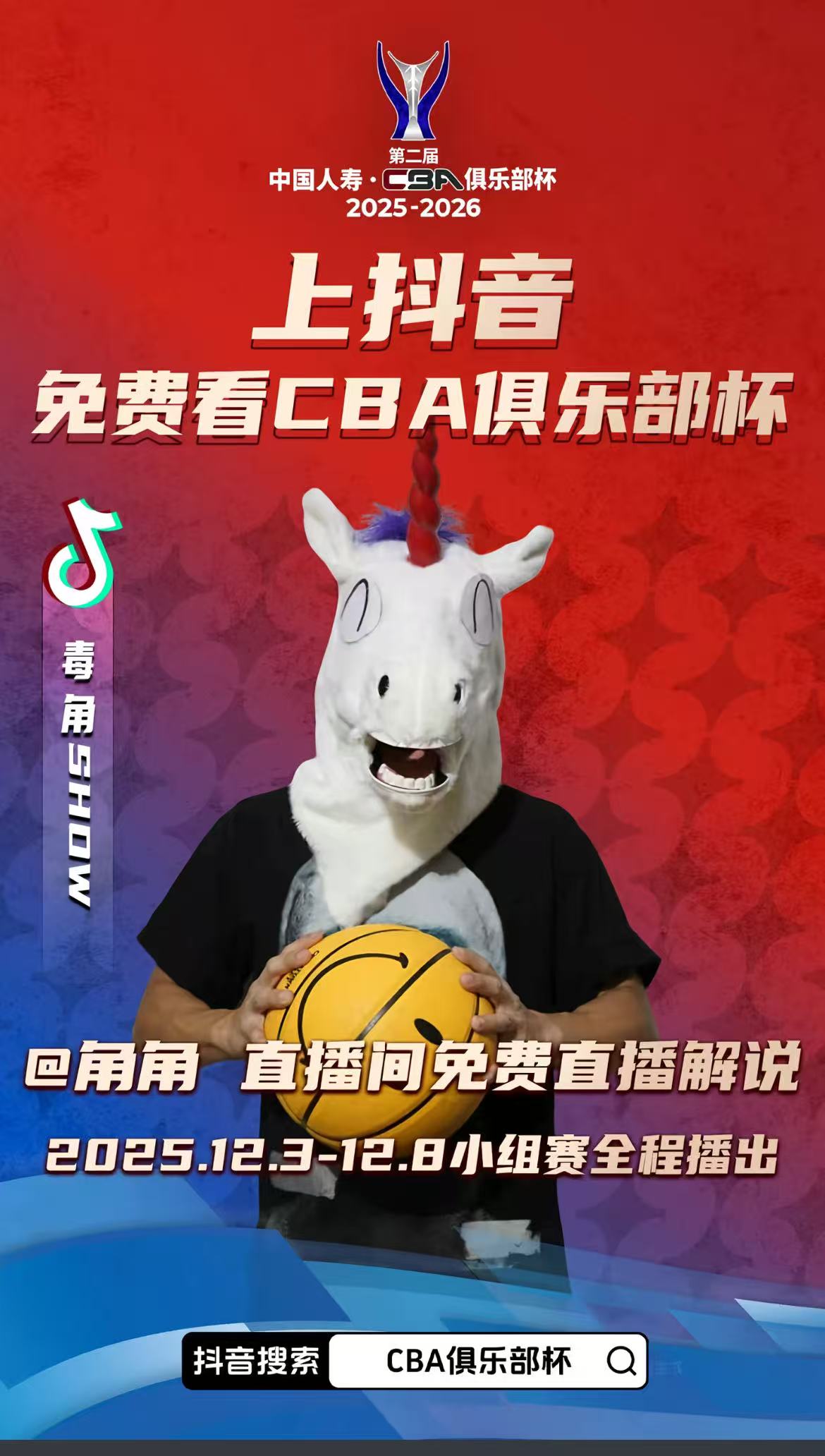 抖音在CBA俱乐部杯期间已开启直播间免费解说直播模式/图片来源:抖音
