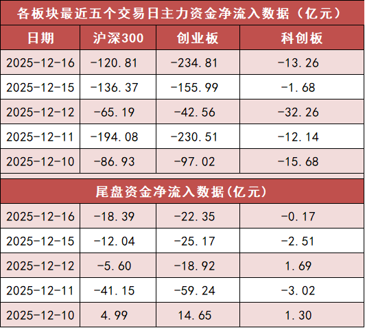 沪深300今日主力资金净流出120.81亿元,创业板净流出234.81亿元。