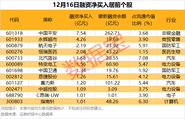 人民财讯12月17日电,截至12月16日,市场融资余额合计2.49万亿元,较前一交易日减少4.59亿元。具体到个股,12月16日获融资净买入千万元以上的有354只,其中12只融资净买入额超亿元。中国平安融资净买入额居首,当日净买入7.54亿元,其次是永辉超市、航天电子,融资净买入金额分别为4.26亿元、2.19亿元,融资净买入金额居前的还有恒瑞医药、北汽蓝谷、特变电工等。